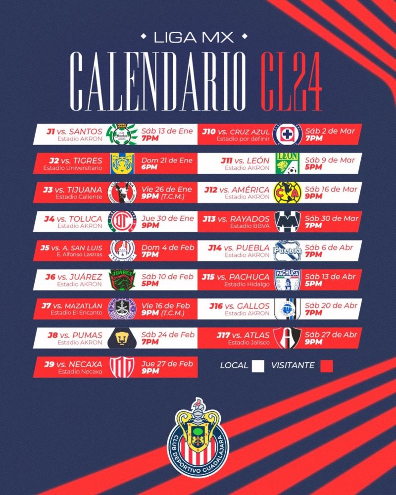 Calendario Chivas 2024 Anno. Consulta las fechas importantes del conjunto del guadalajara para el próximo torneo. Calendario de partidos chivas apertura 2024 liga mx jornada 1: